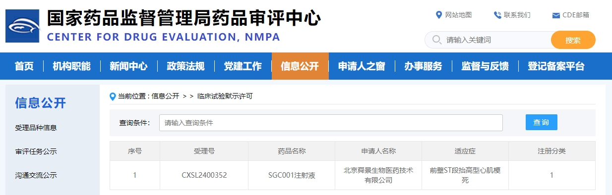 2024年08月05日,由熱景生物(SH.688068)孵化的創(chuàng)新藥公司北京舜景生物醫(yī)藥技術(shù)有限公司(以下簡稱舜景醫(yī)藥)研制的全球首款創(chuàng)新藥SGC001注射液成功獲得國家藥品監(jiān)督管理局藥品審評中心臨床試驗(yàn)?zāi)驹S可。這是繼2024年05月22日該產(chǎn)品獲得美國FDA臨床試驗(yàn)(IND)許可之后又一里程碑事件。