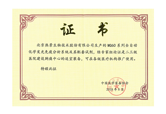 MQ60入選中國醫學裝備協會推薦為胸痛中心適宜裝備